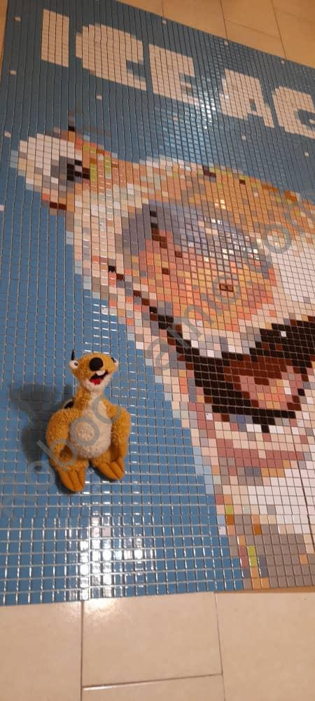 این تابلو فروشگاهی با ۲۰ رنگ طراحی و اجرا گردیده. ابعاد کار ۱.۸ در ۲.۴ متر و مصالح سرامیک استخری البرز می باشد.